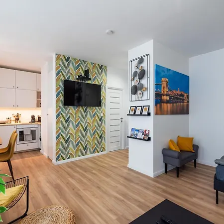 The accommodation includes self-catering facilities, such as an equipped kitchen with an electric kettle, a refrigerator, and glassware. The property is situated 350 metres from Blaha Lujza tér underground station and 1.7 km from Nyugati train station.